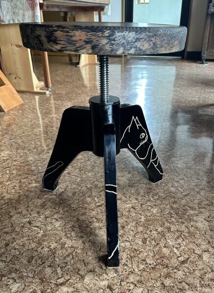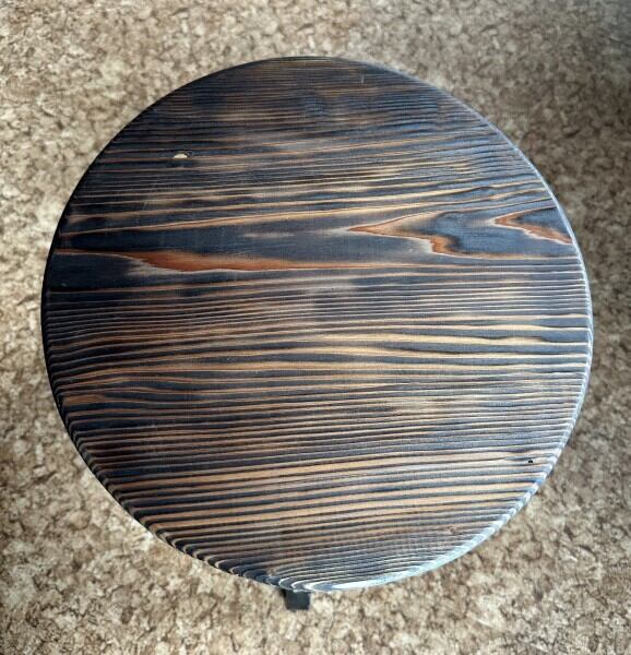 座面は丸太のヒノキを用いて、バーナーにて焼き入れしました。